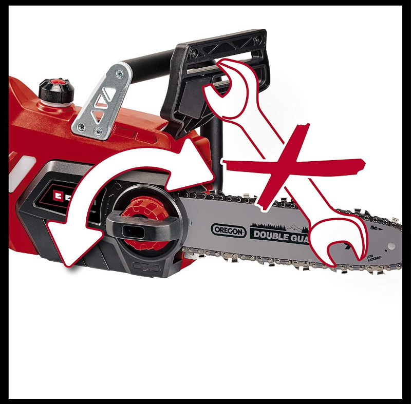 The chain saw can be easily tensioned without special tools. The right chain tensioning is essential for perfect cutting results.