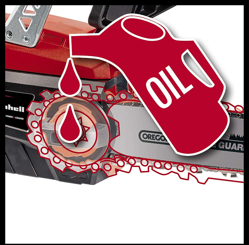 The chain is completely automatically provided with grease when in use. This ensures maximum life cycle of the sword and the chain.